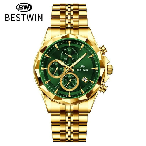 BESTWIN Luxury Men's Watch – Stainless Steel Quartz Moon Phase Business Wrist Watch | Waterproof 30M