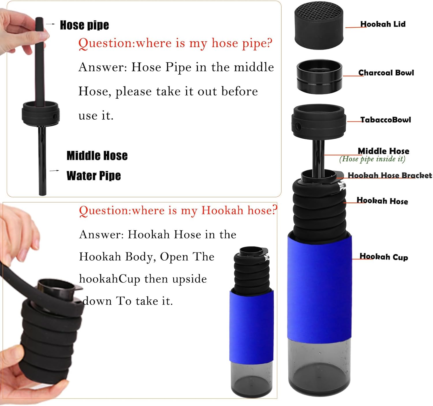 - 【COMPLETE ACCESSORIES】This shisha hookah smoking kit comes with a travel bag, silicone hose, coal tongs, and small and large metal hookah bowl - all perfectly stored inside the hookah with a wind cover lid.